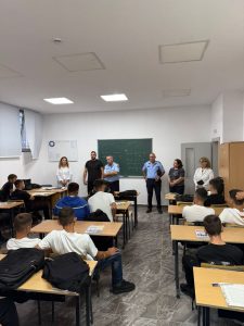 Punonjësit e Policisë së Drejtorisë së Qarkut Durrës, në bashkëpunim me stafin e Qendrës për Mbështetje dhe Iniciativa Sociale, organizuan më 15 shtator 2025 një takim me nxënësit e vitit të parë të Shkollës së Mesme Profesionale “Beqir Çela” në Durrës.