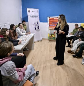 An awareness-raising meeting with youth took place on 3rd December 2025 at the “Sherif Hoxha” high school in Koplik, Malësi e Madhe, by “Woman to Woman” organization in the framework of the SCPA Program Grants’ Scheme, and as part of the 16 Days of Activism against Gender-Based Violence Campaign. The activity aimed to provide students with a broader understanding of community policing and their role in increasing safety. During the meeting, first-year students were introduced to the principles of community policing and then worked in groups to analyze situations related to conflicts between youth,  school safety, online hate speech and perceptions of the police. They identified key actors for managing these situations and proposed concrete forms of cooperation between the school, parents, the police and the young people themselves.