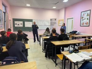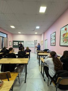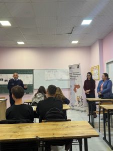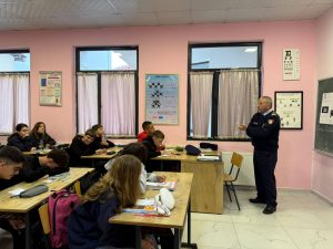 On 17 October 2025, in the framework of the Grants’ Scheme, a meeting was organized with students at the “Jusuf Puka” High School in Durrës. Representatives of the State Police, school staff, students and representatives of the project team participated in this activity by discussing concrete ways to strengthen inter-institutional cooperation and increase students’ awareness of safety in schools and the community. During the meeting, an open and interactive discussion was held with the students, where they shared examples from their daily lives, expressed their opinions on how communication and cooperation between students, teachers and police officers can be improved, how to increase safety in schools and communities, and how to prevent violence or conflicts in schools. These interactions help build mutual trust and a culture of cooperation, making youth more aware and active in creating a safe school and community environment.