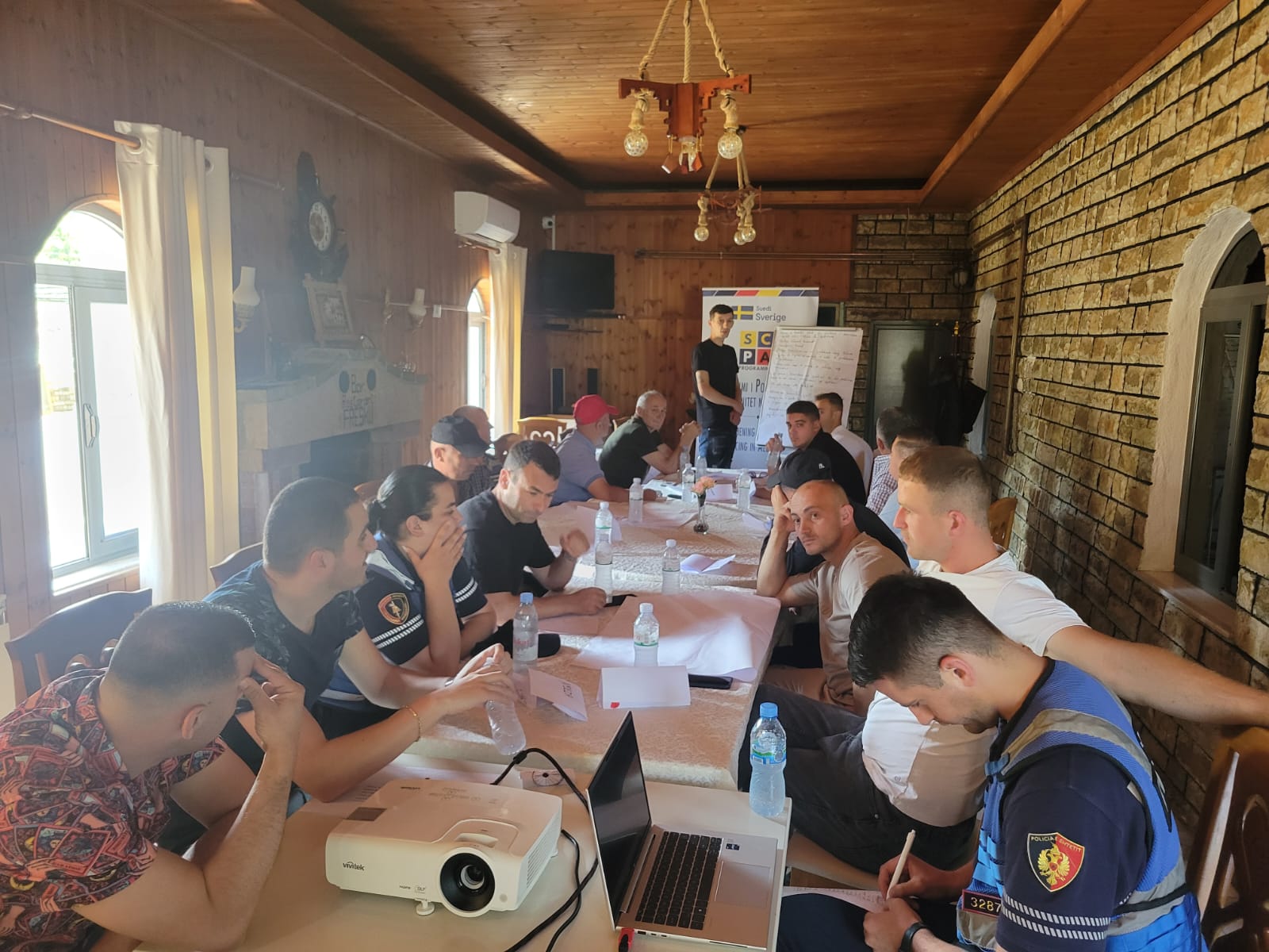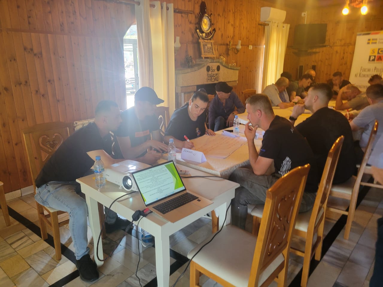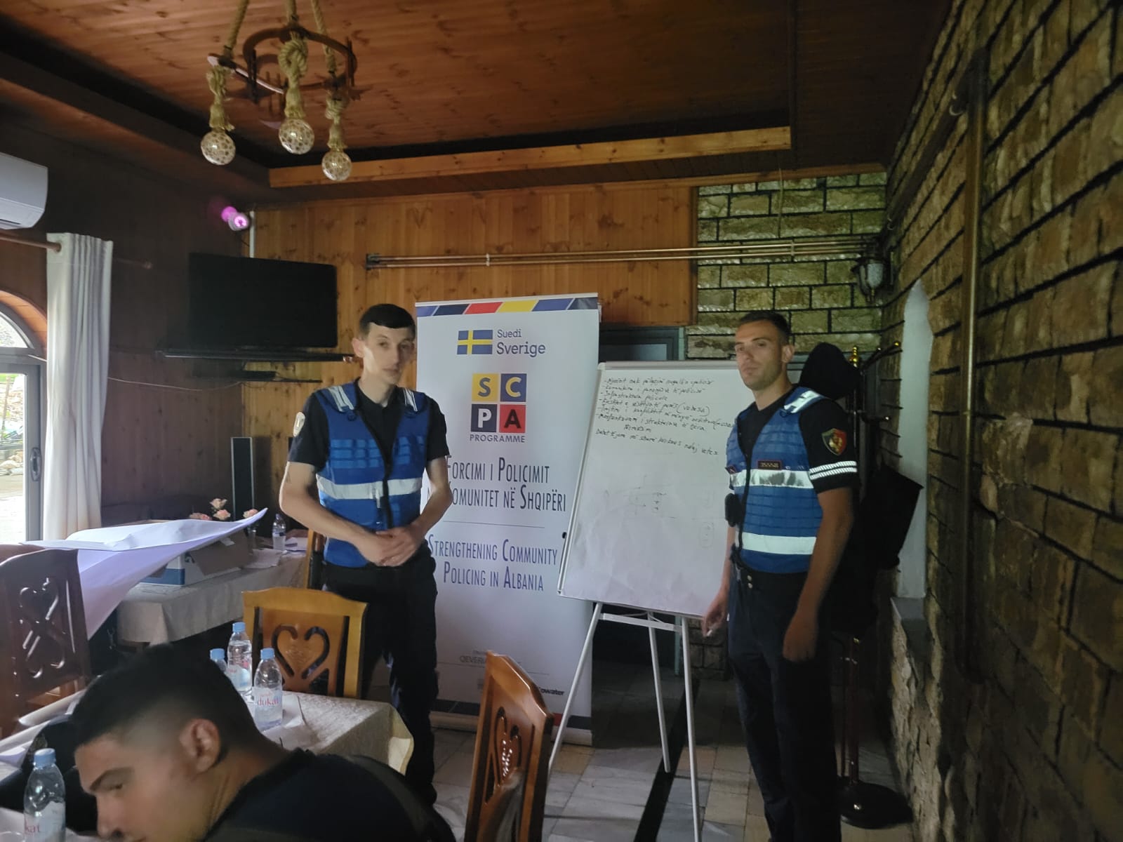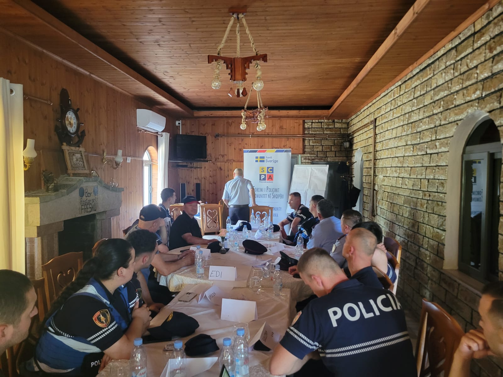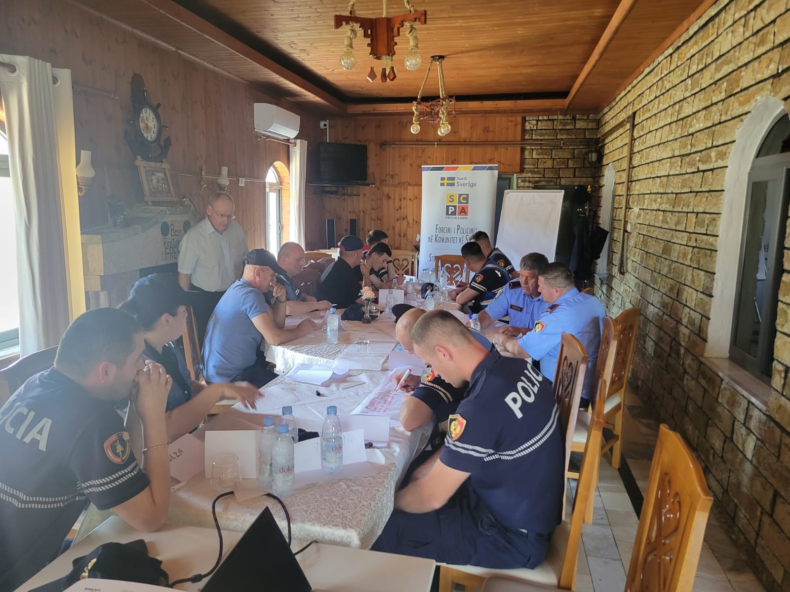 Më 18-20 qershor 2025, Oficerët e Patrullës së Përgjithshme dhe personeli i Sallës së Komandës dhe Kontrollit të DVP Dibër (Komisariati Policisë Mat dhe Stacioni Policisë Klos) morën pjesë në trajnimin e zhvilluar nga Ekipi i Menaxhimit të Programit SCPA në ambientet e DVP Dibër. Gjatë këtij trajnimi të trajnuarit u njohën si me pjesën teorike ashtu edhe me ushtrimet praktike dhe me punën në grup, duke u fokusuar në filozofinë e Policimit në Komunitet dhe zbatimin e elementeve të saj në punën e përditshme të oficerëve të Policisë së Shtetit. Gjithashtu, atyre iu prezantuan situata/ushtrime praktike për t’u trajtuar dhe zgjidhur prej tyre teksa punuan në grup me synimin për të siguruar masat që duhen marrë në mënyrë proaktive për zbatimin e elementeve të Policimit në Komunitet. Vëmendje e veçantë iu kushtua trajtimit të rasteve të Dhunës në Familje si në aspektin teorik ashtu edhe atë praktik. Me qëllim për të ofruar module trajnimi gjithëpërfshirëse, ekipi i Programit SCPA bashkëpunoi me Qendrën Kundër Ekstremizmit të Dhunshëm, ekspertët e së cilës ofruan  leksione ndërvepruese mbi luftën kundër ekstremizmit të dhunshëm. Praktikat më të mira të BE-së për zbatimin e filozofisë së PK-së u ndanë e shkëmbyen me oficerët e PSH. Në përfundim të këtij trajnimi, oficerët e PSH arrijnë të përmirësojnë njohuritë dhe kapacitetet e tyre për zbatimin e Policimit në Komunitet.